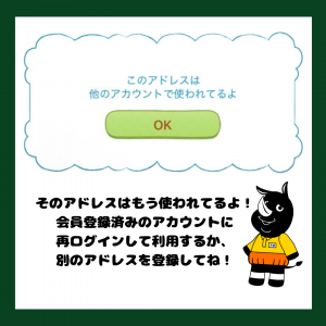 「このアドレスは他のアカウントで使われてるよ」とエラー表示が出る