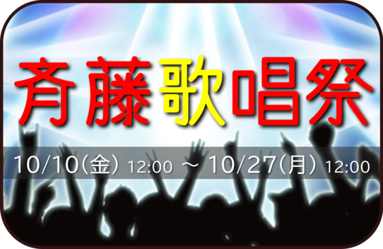 いつも斉藤さんをご利用いただきありがとうございます。10/10(金) 12:00より《斉藤歌唱祭》と題し、《斉藤カラオケ》内で投票イベントを開催いたします。ささやかではありますがプレゼントもご用意しておりますので、ぜひご参加ください! ====■斉藤歌唱祭とは期間中に《斉藤カラオケ》内でチップを受け取った方のランキングイベントです。チップの種類はすべて集計対象となります。 ■今回の特徴*《斉藤カラオケ》内のチップが投票になります*投票券は不要です*サポーターランキングはありません ■期間投票期間:10/10(金) 12:00 ~ 10/27(月) 12:00集計期間:10/28(火) ~ 10/31(金)順位発表:11/4(火)報酬送付:11/7(金) ■ご注意*集計期間はお問い合わせ・異議申し立て期間を含みます*順位確定後にユーザー制限・削除が行われた場合でもランキングは変更されません*不在となった場合も順位・報酬の変更はいたしません ■投票方法期間中、《斉藤カラオケ》内でチップを送付すると自動的にランキングへ反映されます。順位に応じて、さまざまなプレゼントをご用意しています。 ■プレゼント1位:3万円分Amazonギフトチップ2位:2万円分Amazonギフトチップ3位:1万円分Amazonギフトチップ4位:5000円分Amazonギフトチップ5位:3000円分Amazonギフトチップ+50斉藤さんポイント6~10位:100斉藤さんポイント11~20位:50斉藤さんポイント ■ペナルティイベント目的での大量アカウント作成や不正投票が確認された場合は、該当分のチップ・スコアを無効化し、対象ユーザーへの制限処理を実施します。また、虚偽や過度な交換条件など、運営が不当と判断した行為も対象となります。なお、減点処理に関する告知や理由の開示は行いませんのでご了承ください。 ====今年も皆さんの熱い歌声を聴かせてやりましょう!